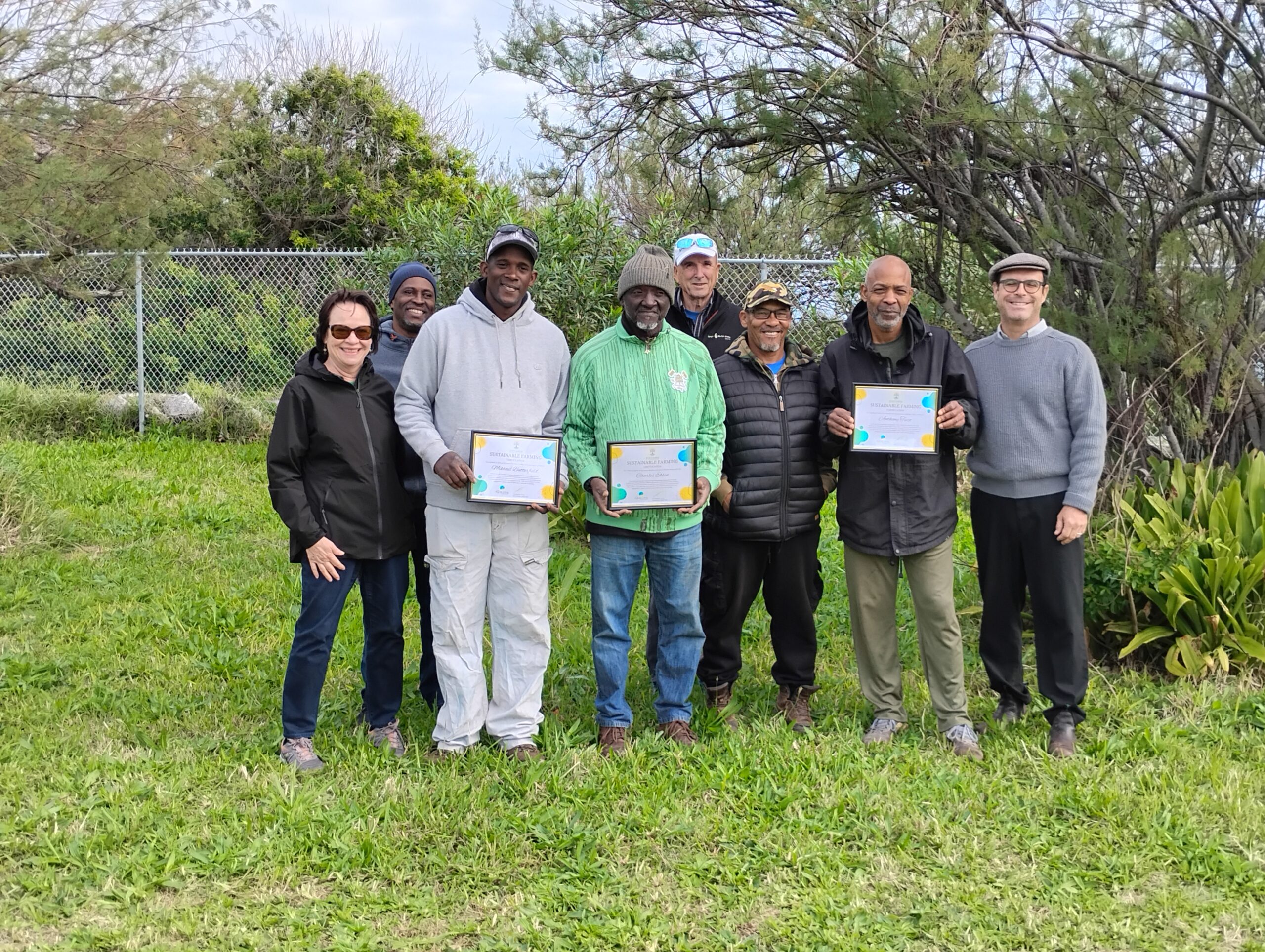 The quartet, which includes Michail Butterfield, Gladwyn Johnson, Charles Ebbin, and Anthony Tuzo, was awarded ‘Sustainable Farming’certificates as part of Focus Counselling Services’ groundbreaking ‘Root & Rise: Healing Earth Project’, which has already proven popular via its ability to provide fresh, low-cost, organically grown plant products to area residents and businesses.